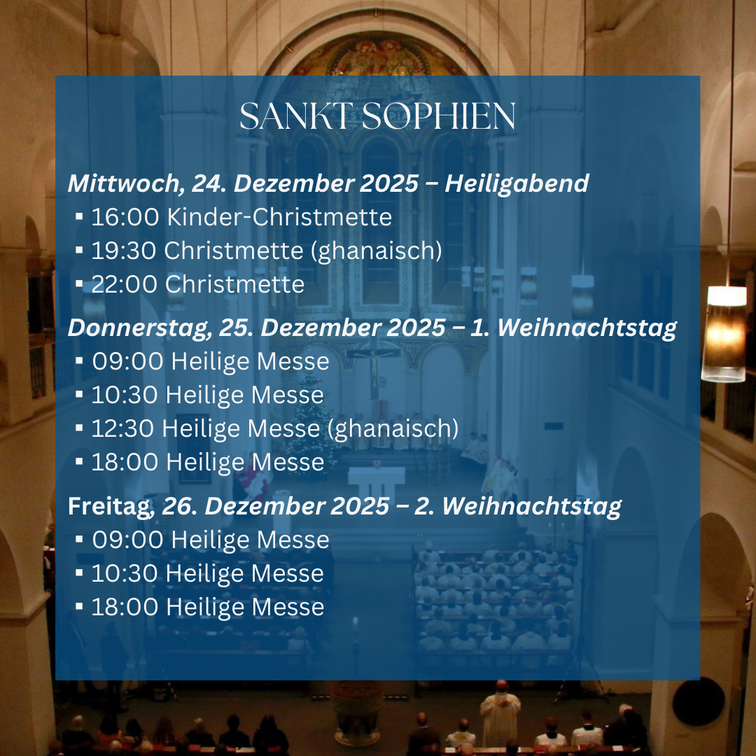 Weihnachtsgottesdienste in unserer Pfarrei Hier finden Sie alle Weihnachtsgottesdienste, die an den Kirchenstandorten unserer Pfarrei stattfinden. Herzlich willkommen!